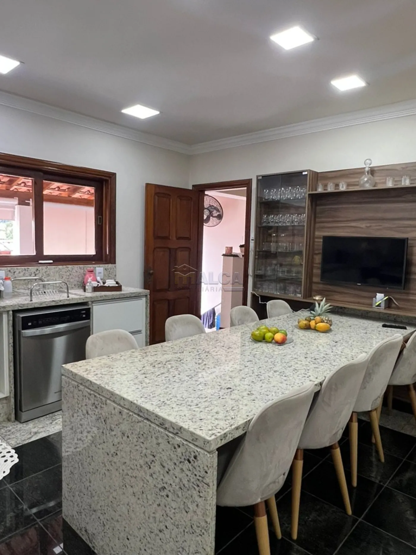 03 Dormitórios sendo 01 Suíte com Armário Embutido, Banheiro Social,Sala de Estar com Lavabo, Sala de TV, Escritório, Copa, Cozinha, Área de Serviço Coberta, Dormitório Externo com Banheiro, Área de Churrasco, Quintal e Garagem.