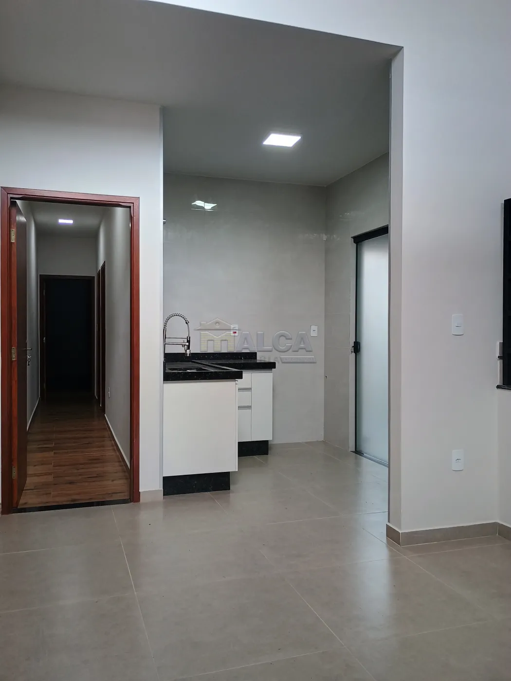 02 Dormitórios sendo 01 Suíte, Sala com Sacada, Cozinha, Banheiro Social, Área de Serviço Coberta, Quintal com Pia e Garagem.