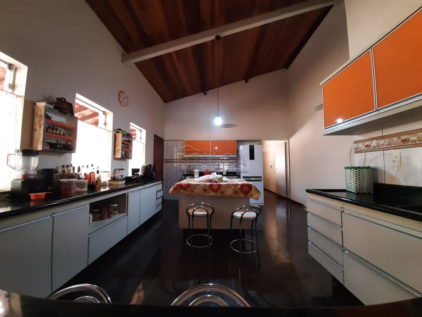 Cozinha americana muito espaçosa e rica em armários