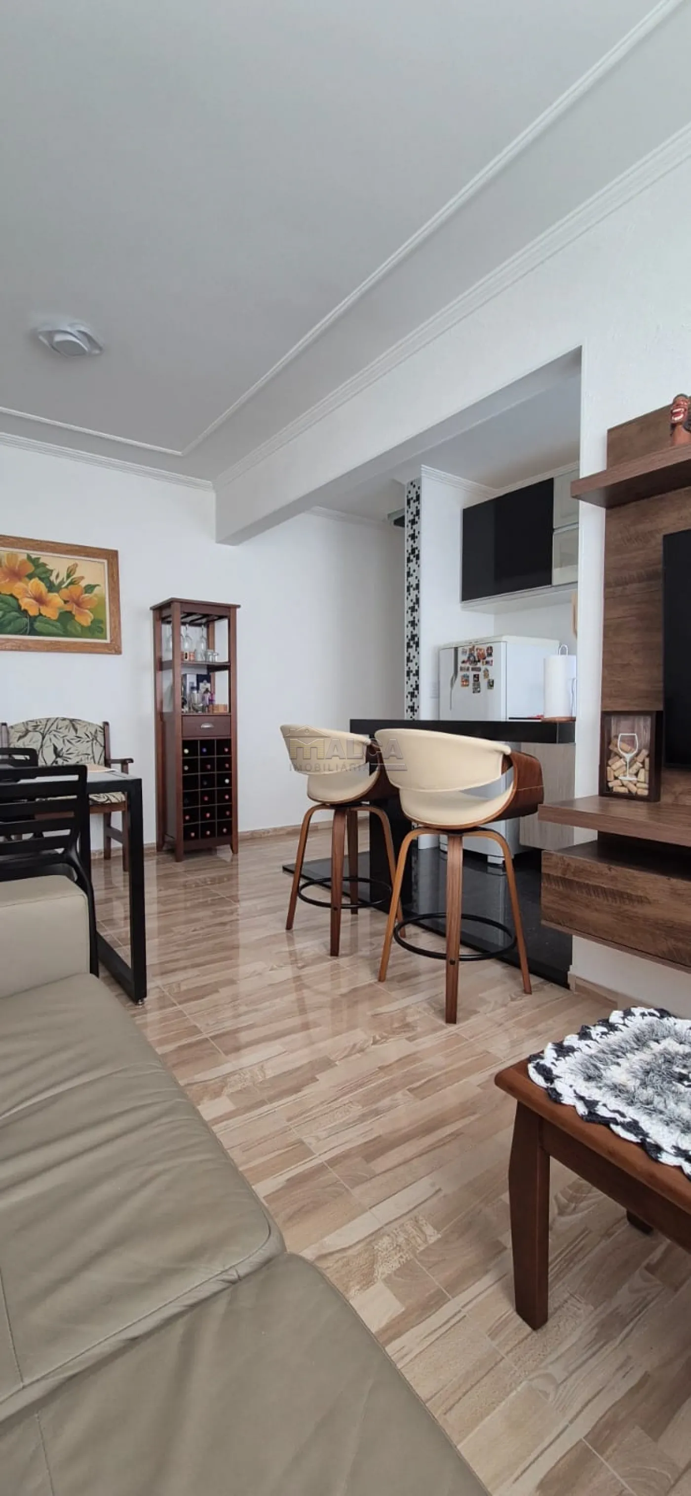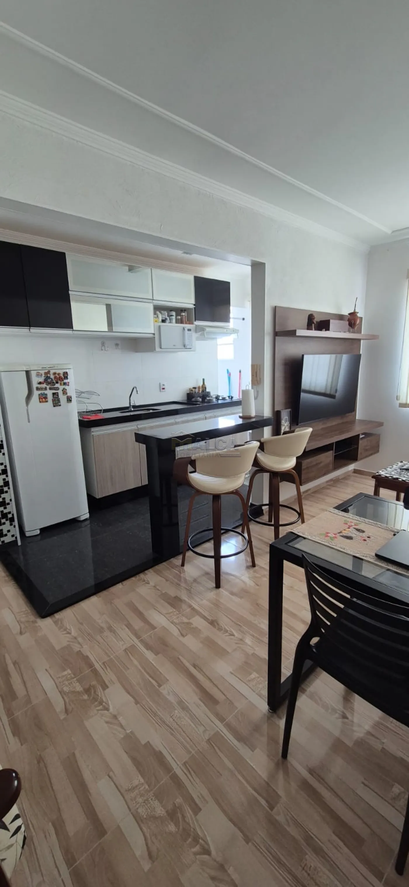 Apartamento com: 02 Dormitórios, Sala Estar, Cozinha, Banheiro Social, Área de Serviço e Garagem Coberta.