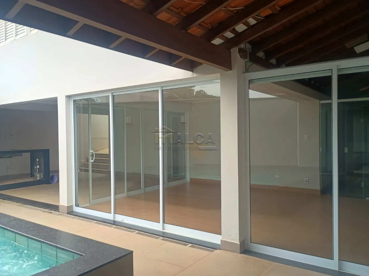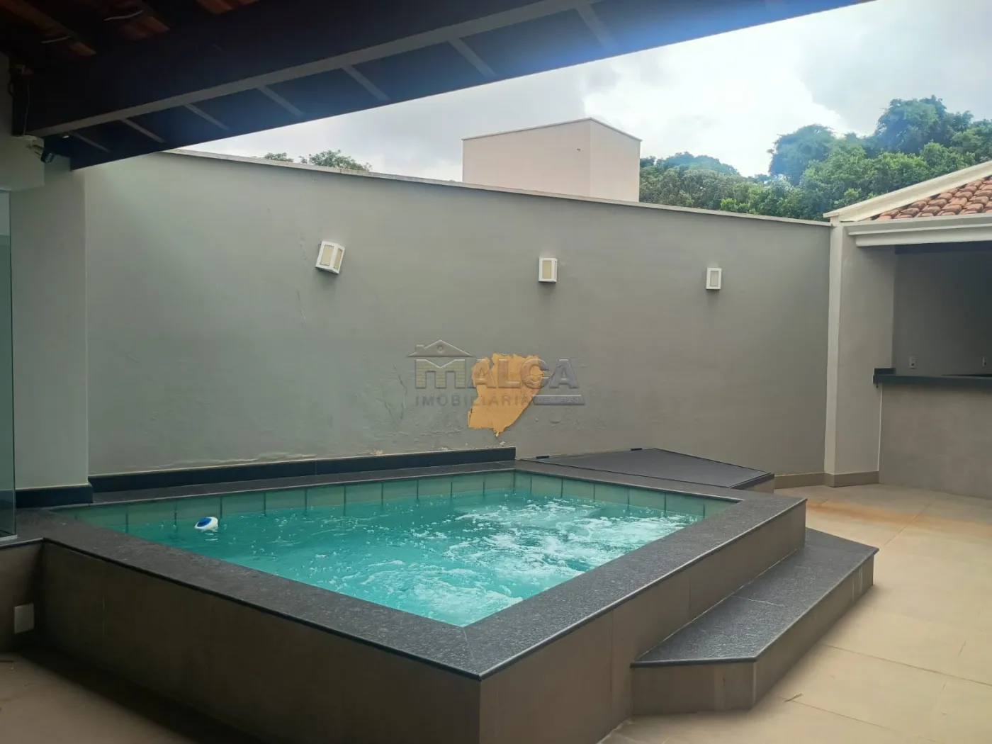 Área Externa com: Dormitório, Cozinha, Banheiro, Salão, Varanda, Piscina, Quintal.