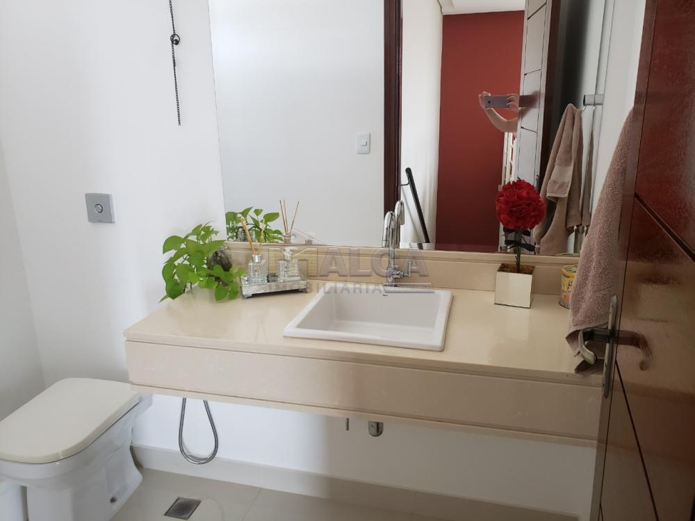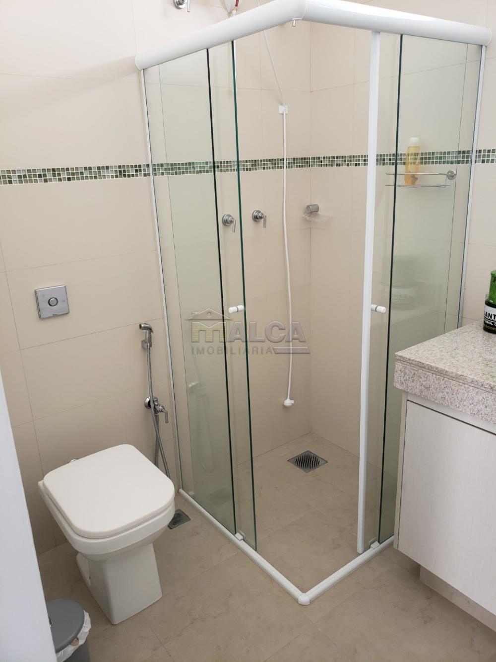 "? Suíte principa l (com varanda exclusiva; closet grande com armários a mplos; banheiro com ducha higiênica, pia com armário e 02 cubas, e chuveiro, ambos com misturadores de água quente e fria )."